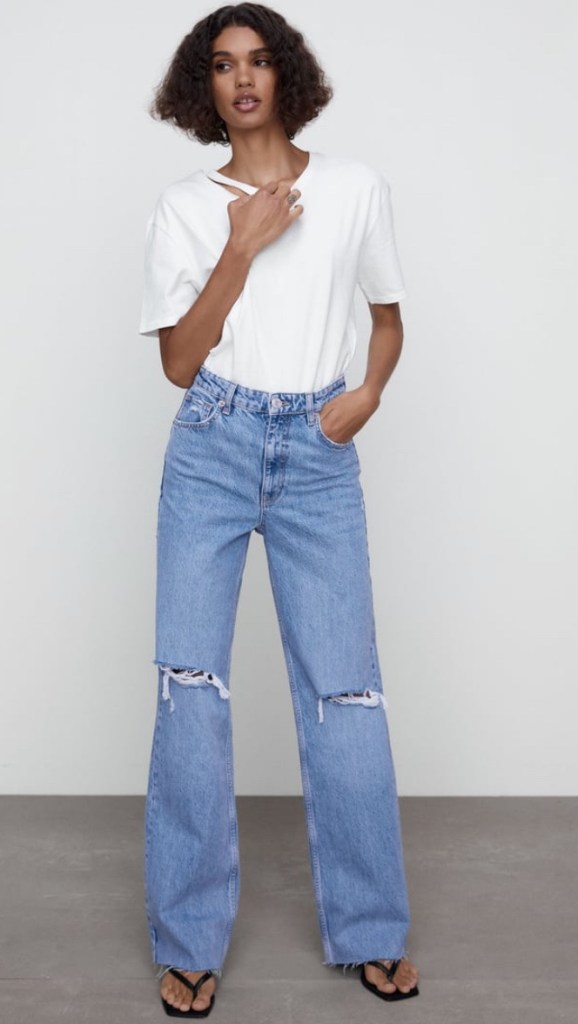 VAQUEROS ANCHOS.– Tenemos infinidad de opciones en vaqueros pero los Reyes indiscutibles esta temporada van a ser los Anchos, los Wide Leg, con rotos, rectos, en blanco en azul, pero anchos… muy anchos.